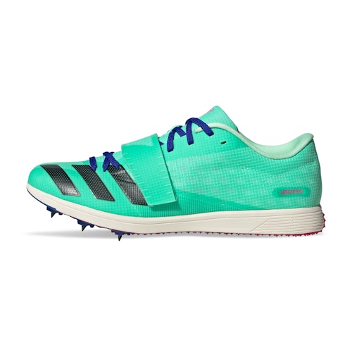 De adidas Adizero TJ PV voor zowel dames als heren zijn neutrale spikes. De spikes zijn speciaal ontwikkeld voor het Triple Jump, oftewel hink-stap-springen en het onderdeel Pole Vaulting, oftewel polsstokhoogspringen. Ze zijn gemaakt voor het maken van snelheid en zijn licht van gewicht. Het enkellaags Celermesh-materiaal valt nauwsluitend om de voeten en biedt een ademend vermogen. De klittenband strap rondom de middenvoet biedt extra steun en een goed lockdown gevoel.