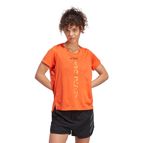 Artikelnummer: HT9416 Artikelgroep: T-Shirts Pasvorm: Standaard Eigenschappen: Reflecterend Collecties: adidas Terrex Agravic Kleur: Oranje Geslacht: Dames Merk: adidas Materiaal: 100% gerecycled polyester
