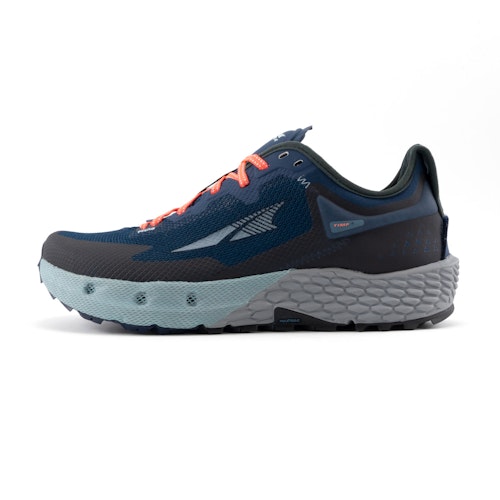 De Timp 4 van Altra zijn neutrale trailschoenen. De vierde editie van de Timp heeft een bovenwerk van sneldrogend mesh wat de voeten goed omsluit. Het bovenwerk is versterkt met overlays voor extra stevigheid en bescherming. De anatomische voorvoet biedt genoeg ruimte voor de tenen om vrij te kunnen bewegen.