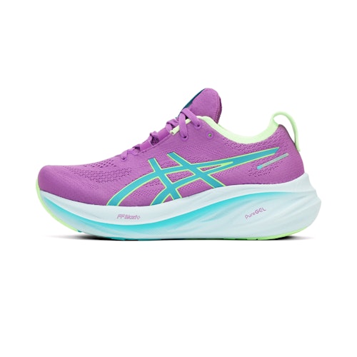 Artikelnummer: 1012B649-300 Artikelgroep: Allround hardloopschoenen Collecties: ASICS Gel Nimbus Kleur: Paars Geslacht: Dames Merk: ASICS Schoentype: Neutraal Demping: Gemiddeld / veel Voorvoethoogte: 34 mm Hielhoogte: 42 mm Offset: 8 mm Responsiviteit: Weinig / gemiddeld Ondersteuning: Gemiddeld Gewicht: 262 g Breedte: Normaal