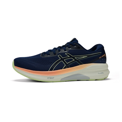 De FF BLAST™ demping van dit model zorgt voor goede veerkracht en geeft jouw run een energieke uitstraling. De foam is licht van gewicht, comfortabel en zorgt voor een trampoline-effect terwijl je rent. Naast het foam in de tussenzool zorgt de unieke PureGEL™-technologie van ASICS voor extra comfort en zorgt voor perfecte schokdemping om de impact op je gewrichten te verminderen. Door deze technologie zal je fijne demping ervaren bij iedere stap die je zet. De LITETRUSS™-technologie van de schoen geeft je de steun die je nodig hebt. LITETRUSS™ is een correctieblokje aan de binnenzijde van de schoen dat ervoor zorgt dat je voet en enkel niet naar binnen kunnen zakken tijdens de afwikkeling. 3D SPACE CONSTRUCTION™ zorgt voor een op maat gemaakte hielkap voor dames en heren. De constructie past zich aan de vorm van de voet en levert als resultaat meer compressie bij een haklanding, dit zorgt voor een fijne afwikkeling.
