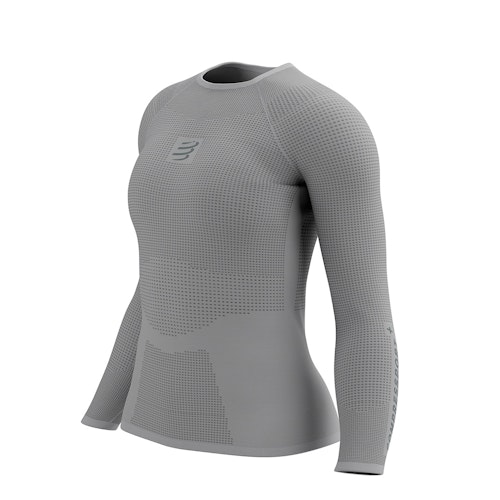 Artikelnummer: AW00127B-100 Artikelgroep: Shirts Pasvorm: Nauwsluitend Kleur: Grijs Geslacht: Dames Merk: Compressport Materiaal: 73% polyester, 19% polyamide, 8% elastaan