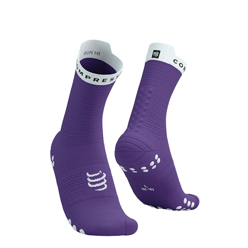 • De Pro Racing Socks V4.0 Run High zijn comfortabele, hoge compressiesokken die ideaal te gebruiken zijn voor je dagelijkse run. Ze bevatten siliconen inzetstukken rond de binnenkant van de zoom die voorkomen dat de sok naar beneden glijdt.