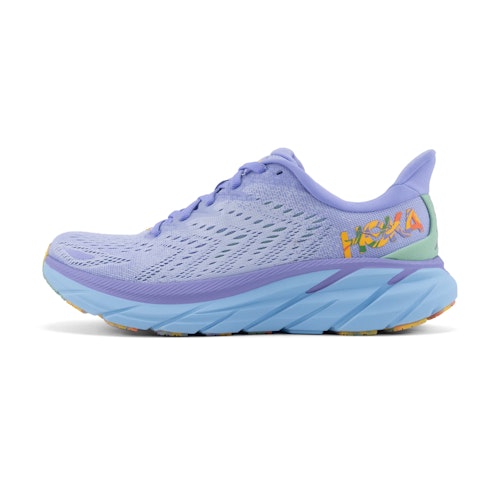 De HOKA Clifton 8 zijn neutrale hardloopschoenen. Het nieuwste model van de populaire Clifton biedt een nog zachtere rit dan zijn voorganger. De Clifton 8 is daarnaast nog 15% lichter en de slijtzool is verbeterd en verduurzaamd ten opzichte van de Clifton 7.