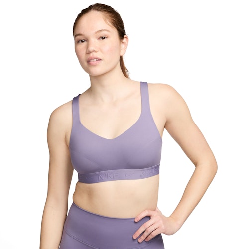 Artikelnummer: FD1068-509 Artikelgroep: Sport-BH's Collecties: Nike Indy Kleur: Paars Geslacht: Dames Merk: Nike Materiaal: 78% polyester, 22% elastaan