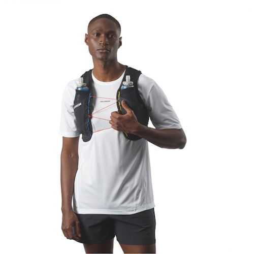 • De Sense Pro 6 Race Flag Set is een lichtgewicht drinkvest met een uniek zwart-wit racevlagontwerp, perfect voor snelle trails tot 100 km. Voorzien van 2 x 500 ml zachte flessen, slimme opbergopties zoals een veelzijdige tunnelzak, en SensiFit™-technologie voor ultiem comfort en stabiliteit. Ideaal voor intensieve trailruns.