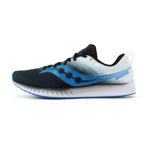 • De Saucony Fastwitch 9 voor heren zijn comfortabele antipronatieschoenen. De negende versie van de wedstrijdschoen is opnieuw ontworpen voor pronerende lopers en gemaakt voor het lopen van snelle tempo’s tijdens wedstrijden en trainingen. De Fastwitch 9 wedstrijdschoenen hebben slechts een heeldrop van 4 mm en is zeer licht en responsief.