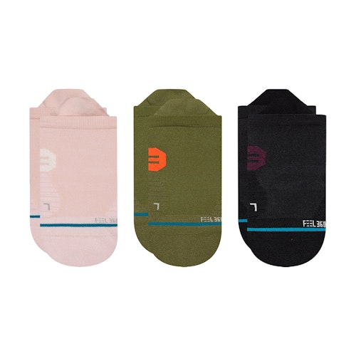 De Stance Skedaddle 3-Pack zijn comfortabele hardloopsokken voor dames. De Feel 360-technologie in de sokken houdt de voeten fris en droog tijdens het hardlopen. De reactieve vezels reguleren de temperatuur en houden je voeten droog en comfortabel. De sokken ondersteunen de voetboog en zijn zeer duurzaam. Het ademende mesh-materiaal en het naadloze ontwerp maakt de hardloopsokken zeer comfortabel. Het is mogelijk om deze sokken op 40°C te wassen, maar vermijd de droger dan gaan ze langer mee.